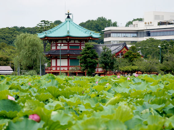 湯島台地と上野台地に挟まれた渓谷には、不忍池が。