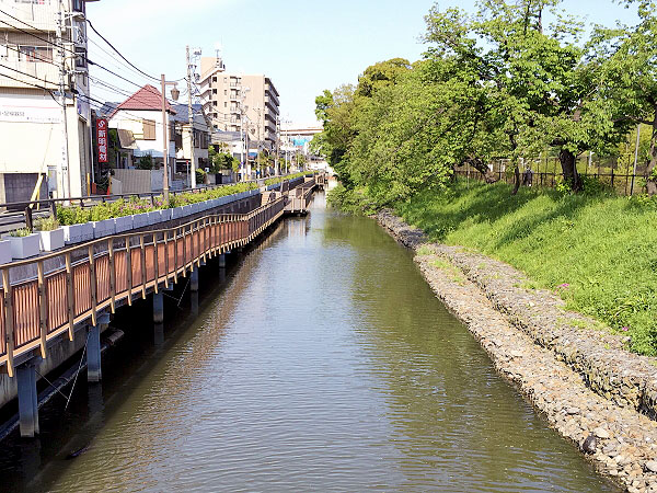 土手から拘置所を望む眺めは、