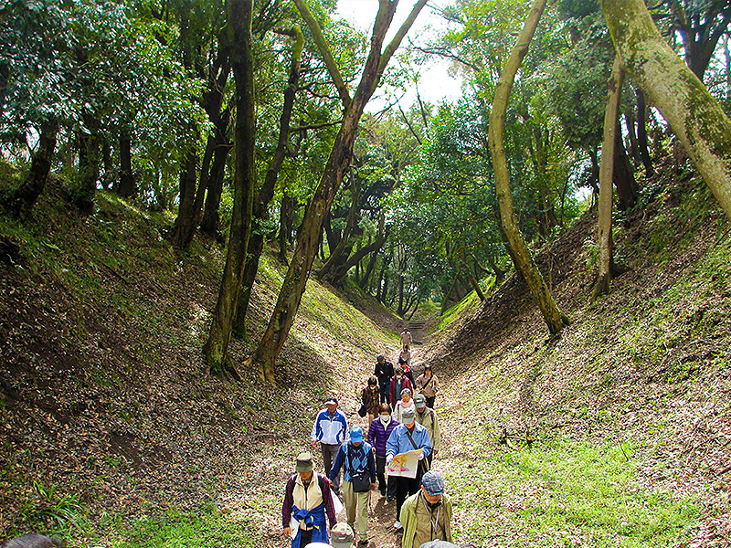 【距離:5.0km】JR「小田原」駅 → 1.城下張出 → 2.山ノ神台 → 3.山ノ神堀切 → 4.稲荷森 → 5.小峯御鐘ノ台堀切 東堀・中堀・西堀 → 6.八幡山古郭 本曲輪・東曲輪 → 7.御用米曲輪 → 8.小田原城天守前 (解散)